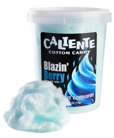 Break into a piñata of flavor with Caliente Cotton Candy! Made of sugar, spice, and even more spice, this fired-up fluff has a blue raspberry flavor and an impressively bold kick!